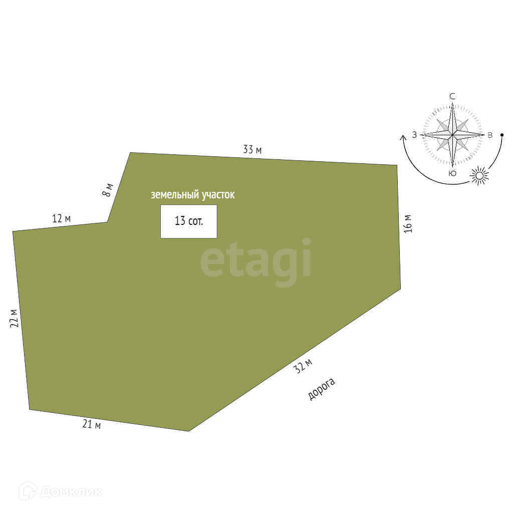 Площадь участка 13 сот.
