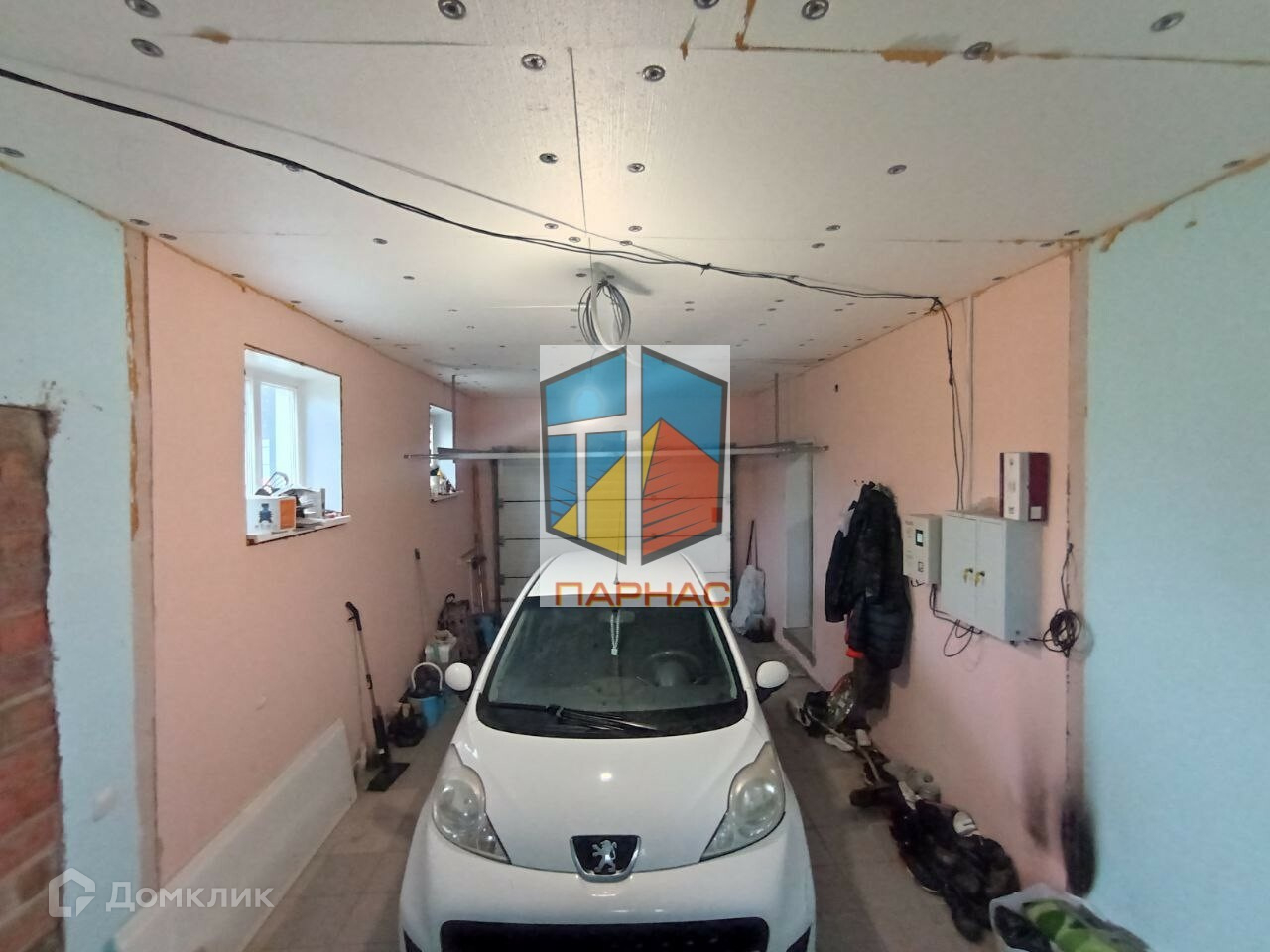 Под единой крышей расположен гараж под машину.