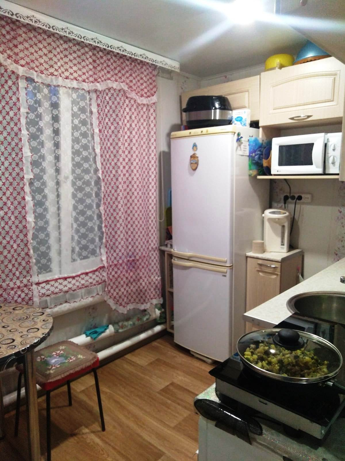 Квартира с косметическим ремонтом, окна пластиковые, натяжные потолки, пол линолеум, трубы поменяны, счётчики на свет, встроенный шкаф купе.