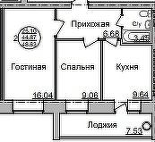 Общая площадь: 56.11 м2