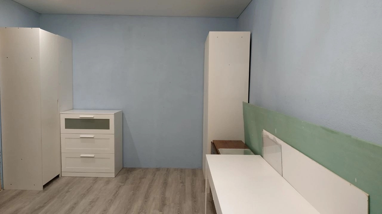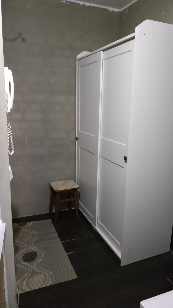 В квартире установлены пластиковые окна, железная дверь. Полы ламинат.Санузел совмещен. В квартире остаётся встроенная кухня с газовой встроенной панелью, большой шкаф в прихожей, кровать, два комода, встроенные шкафы.