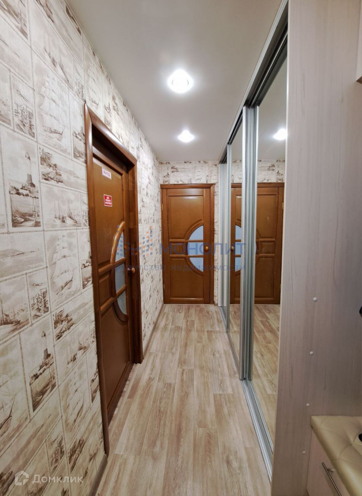 Просторная прихожая с вместительным шкафом-купе.