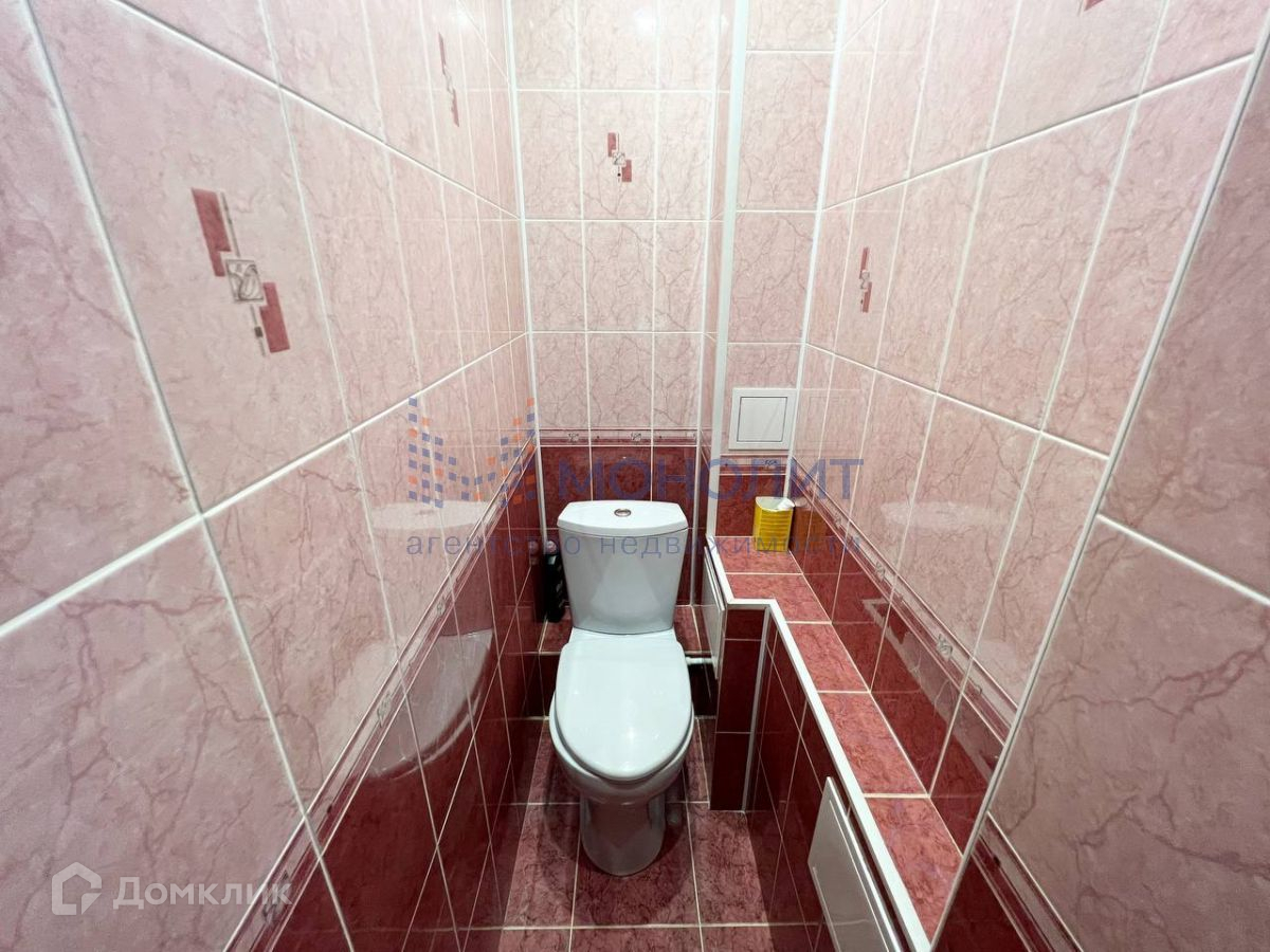 Раздельный санузел отделан современным кафелем.