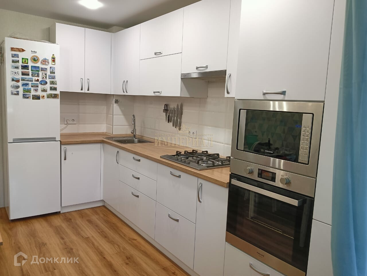 В кухне установлена встраиваемая техника.