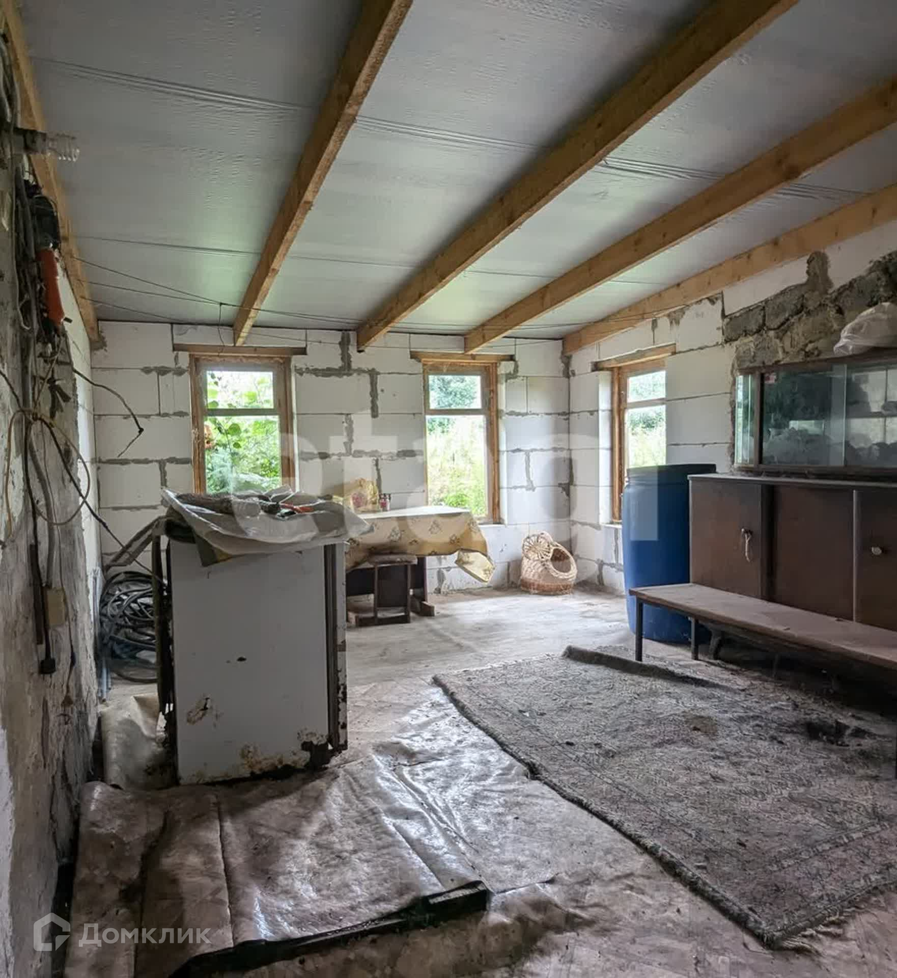 Дом из шлакоблоков, оштукатурен, пригодный для круглогодичного проживания.