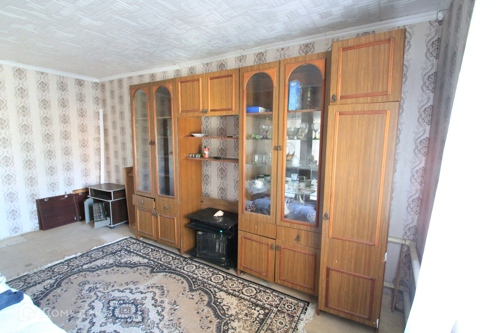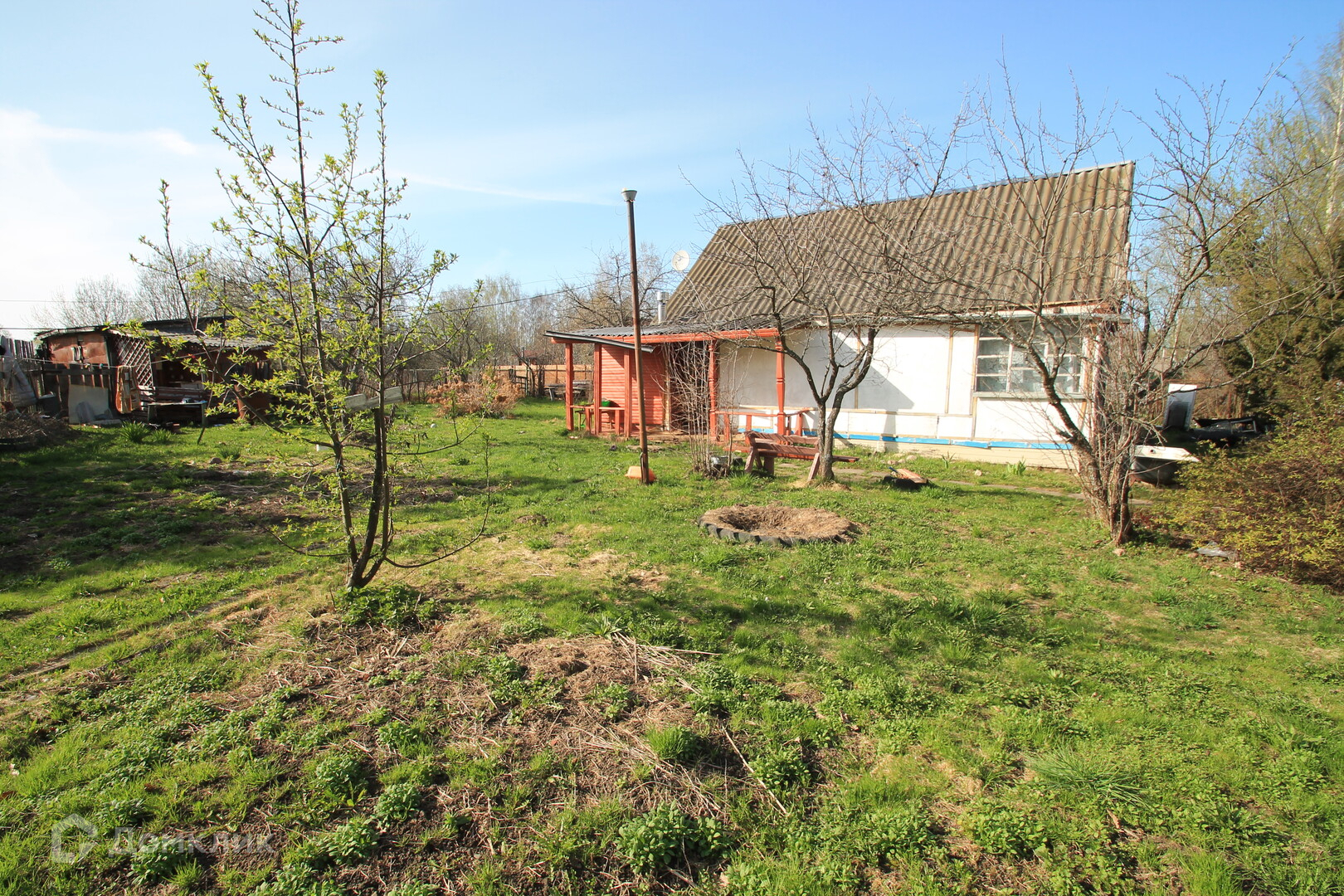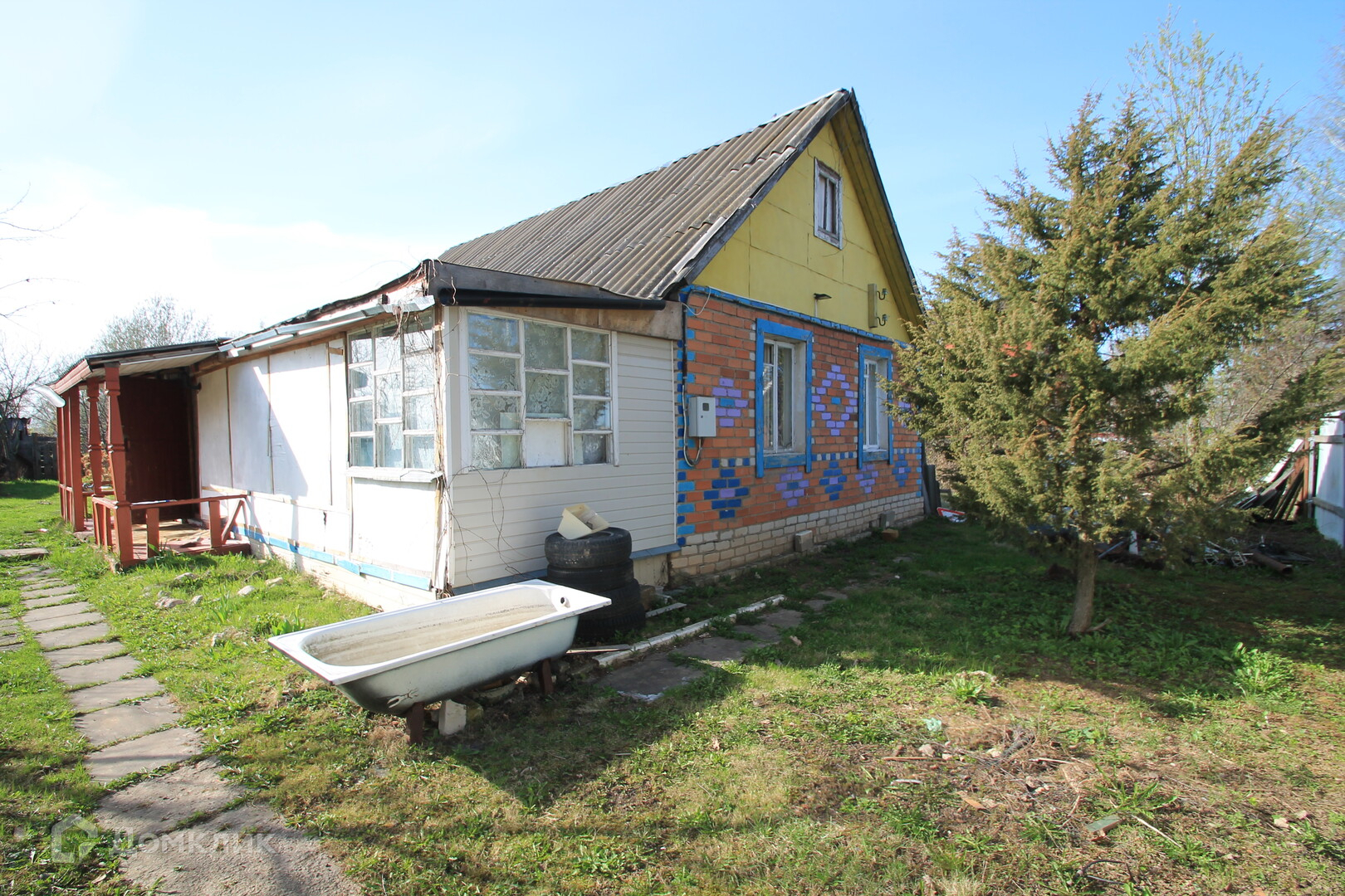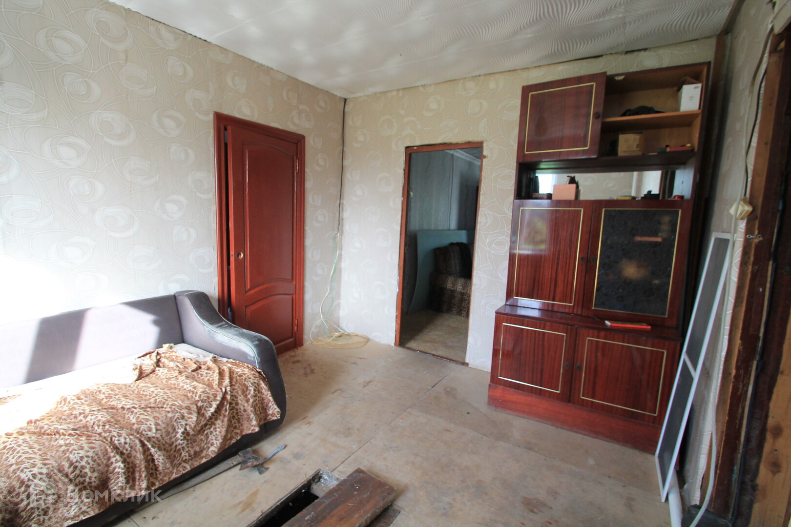 Общая площадь дома 54.кв.м из кирпича. Стоит на ленточном фундаменте высота 400 мм. Полы деревянная доска, деревянные и пластиковые стеклопакеты. Стены аккуратные обои. Крыша покрыта шифером.