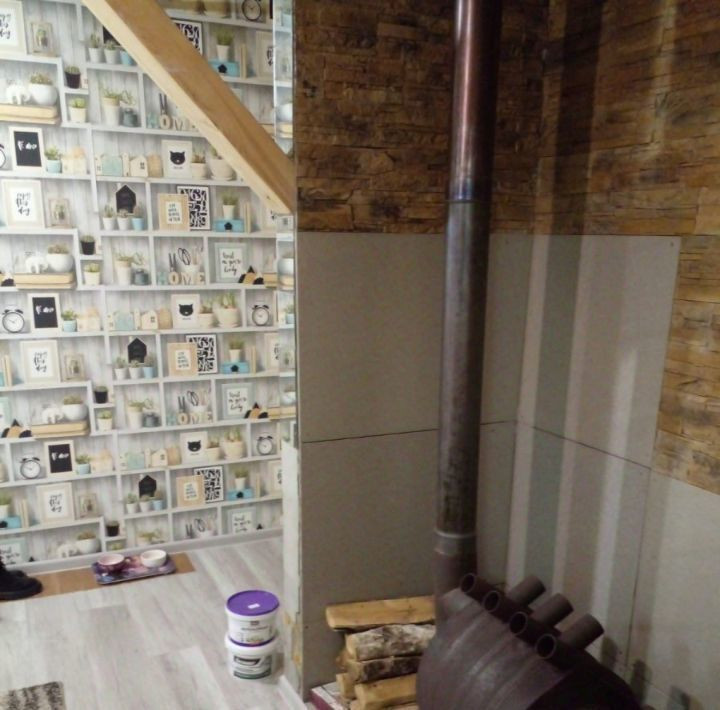 Общая площадь 81,6 кв.м., выполнен из газоблоков, внутри утеплен, обшит вагонкой, снаружи ОСБ. Планировка: 1 этаж: прихожая, санузел, просторная кухня-гостиная и выходом на второй этаж, две комнаты. 2 этаж: большая комната.