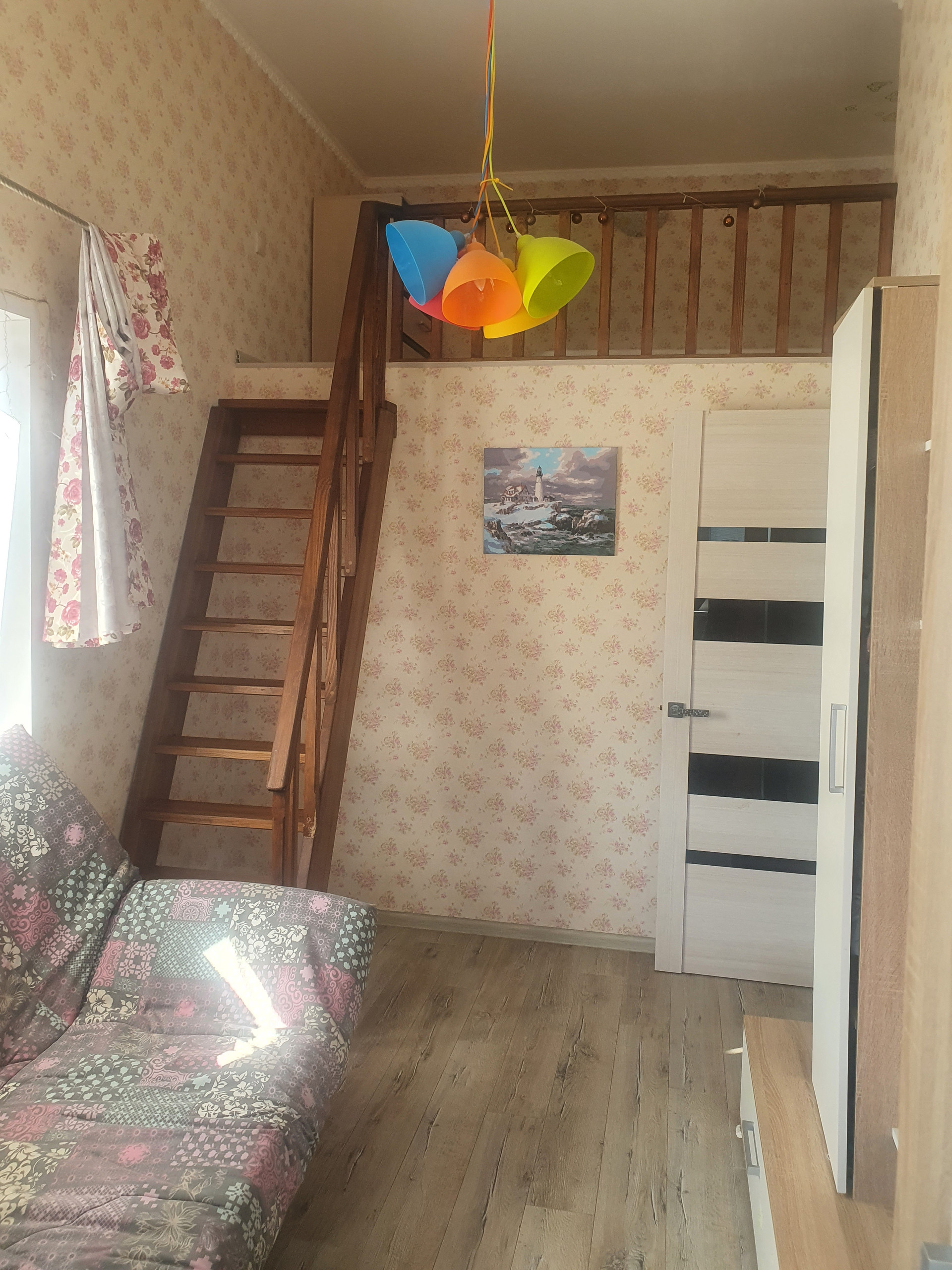 Второй этаж: спальня с застеклённой теплой лоджией, большой санузел с ванной, детская двухуровневая (второй уровень примерно 1,5 м высотой) комната с застеклённой тёплой лоджией. Много антресолей куда можно спрятать всё что угодно.