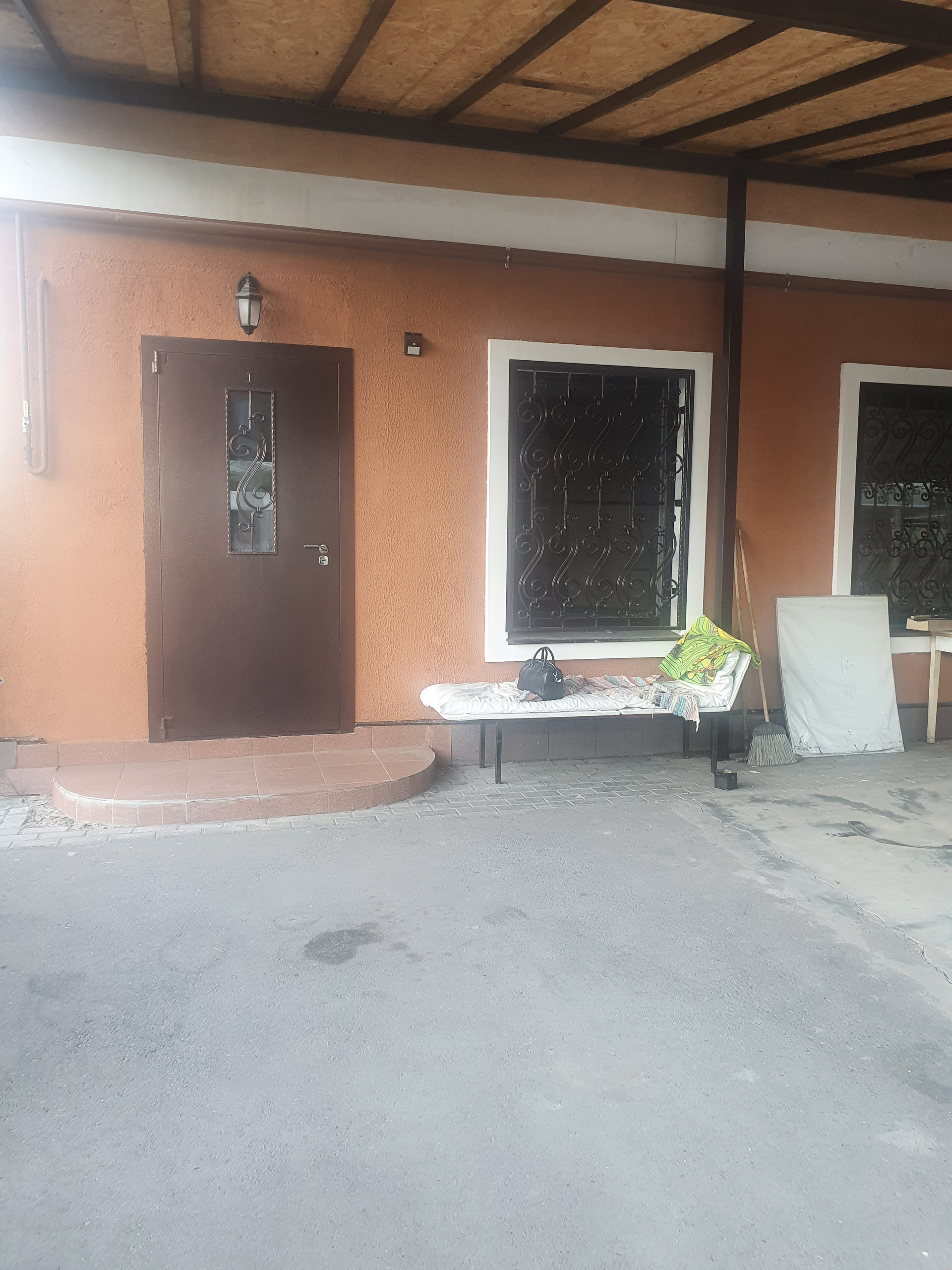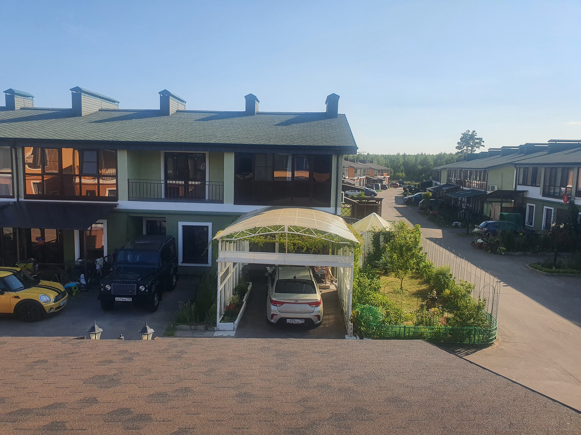 Зелёный участок вдоль торца квартиры. Под навесом в любое время года удобно жарить шашлыки и т.д.