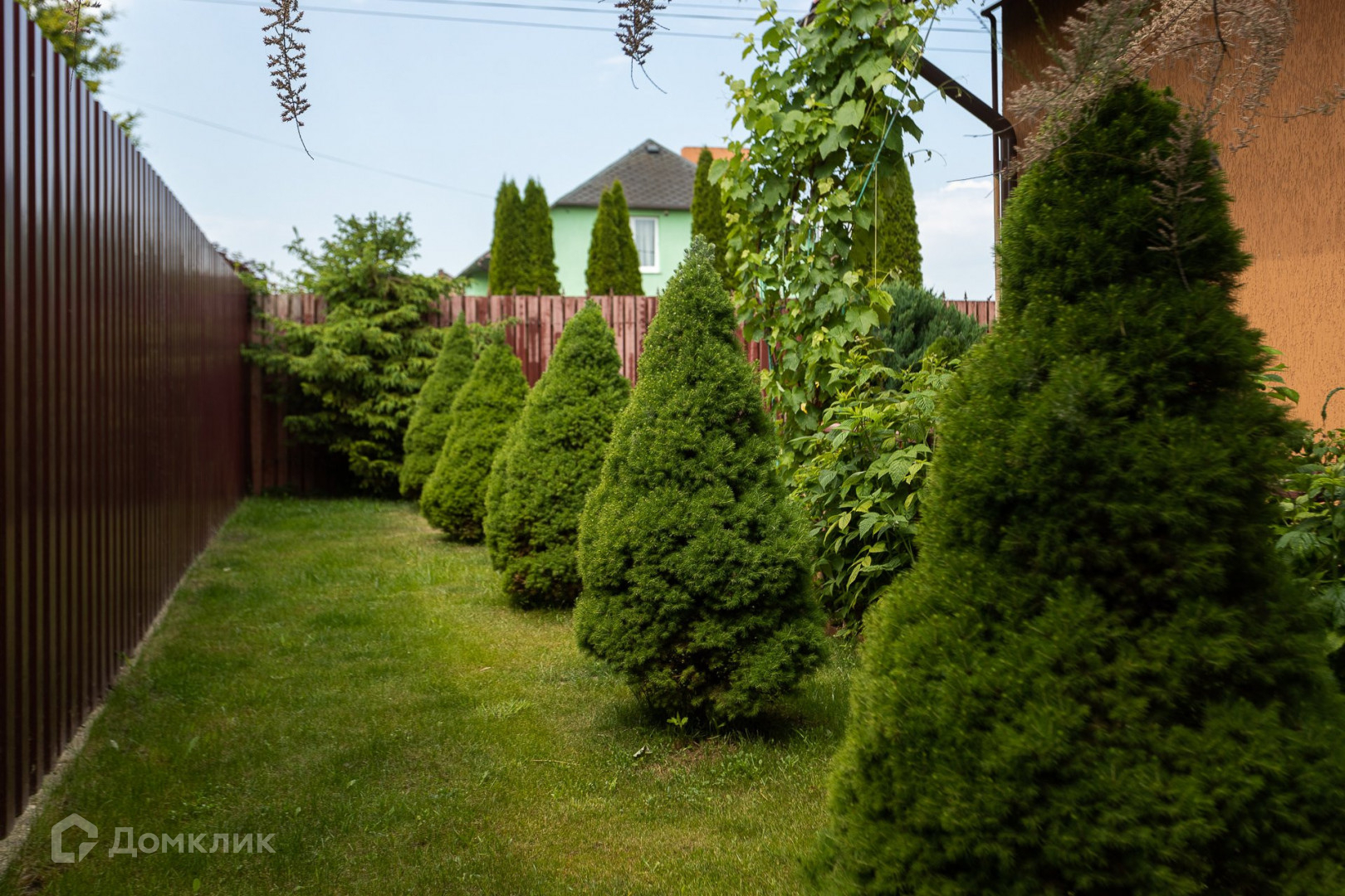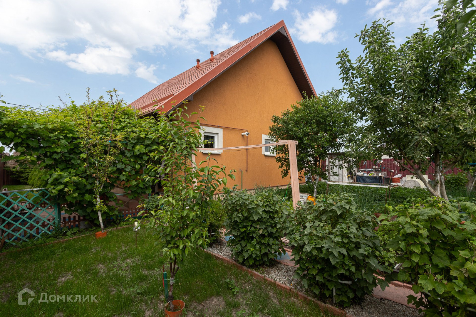 Земельный участок благоустроен и озеленен, есть плодовые деревья и кустарники, небольшой огород с теплицей.