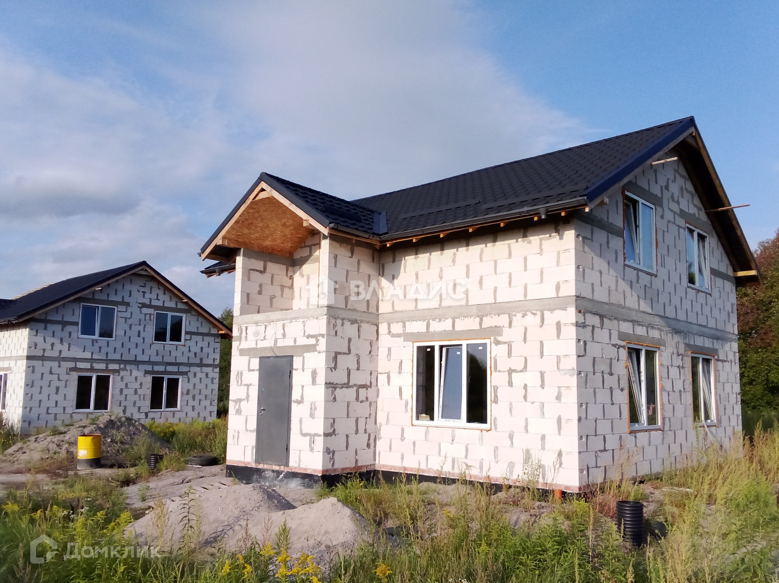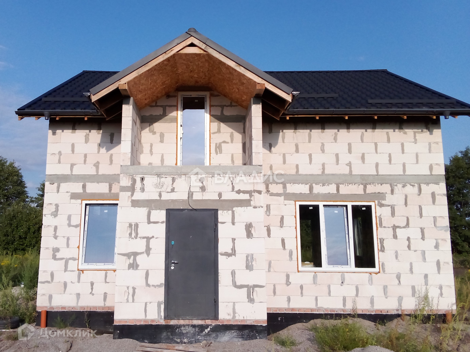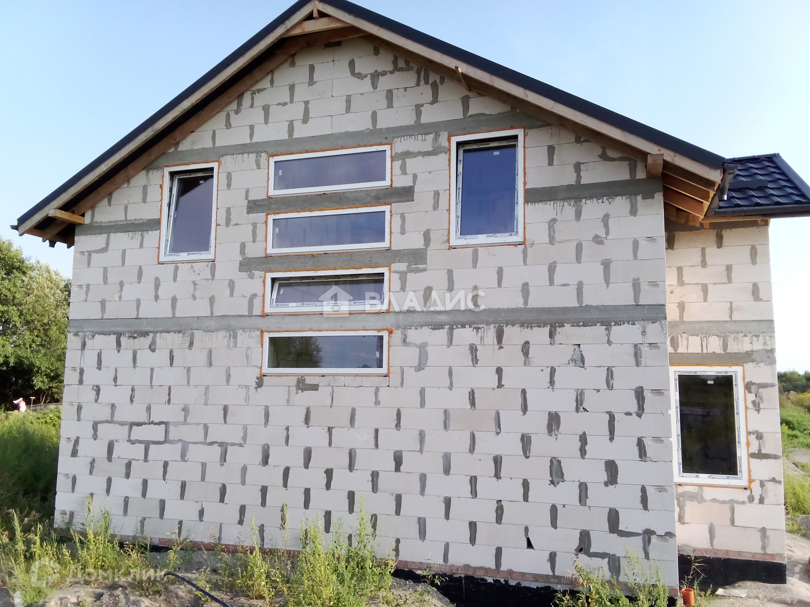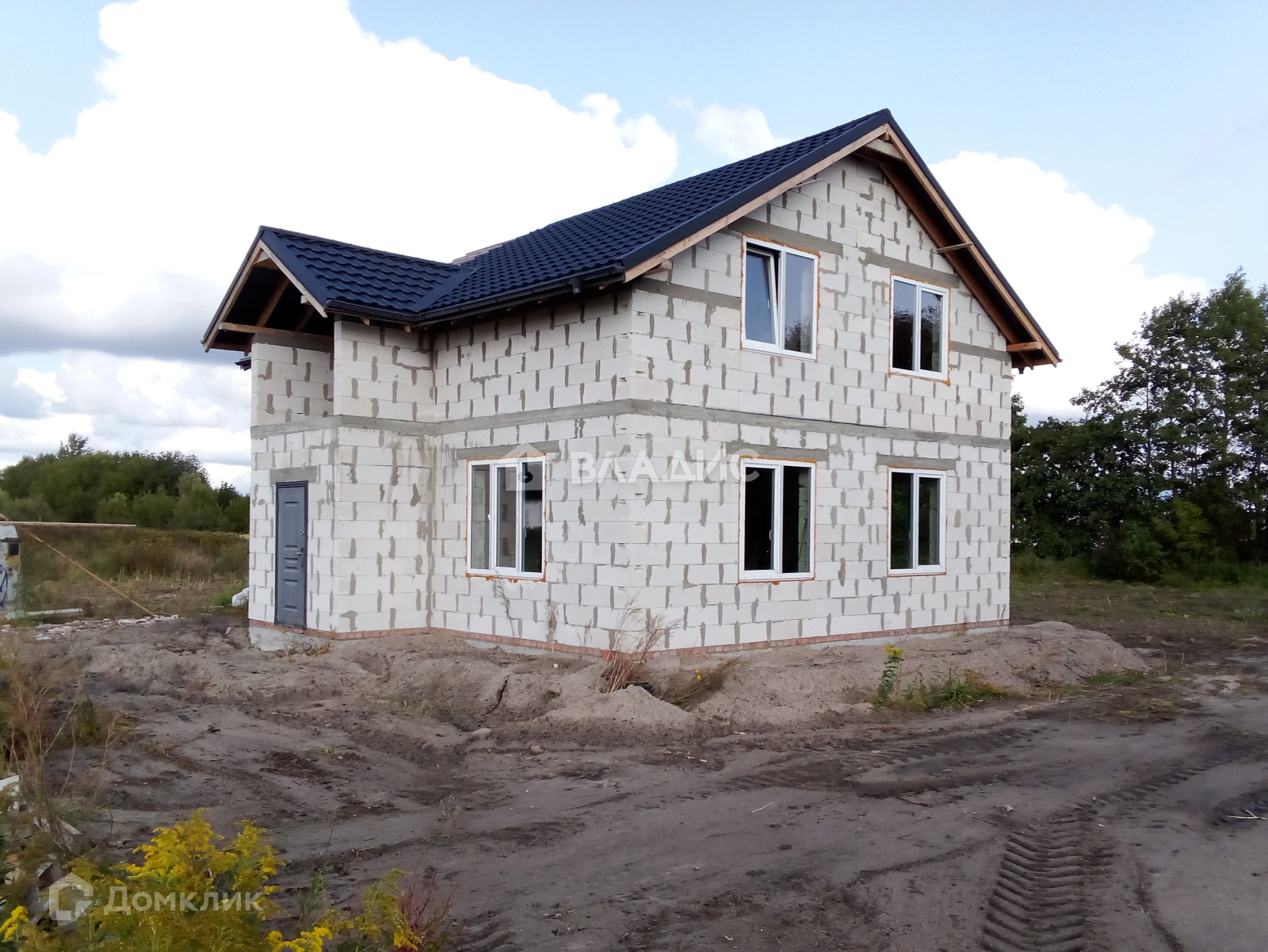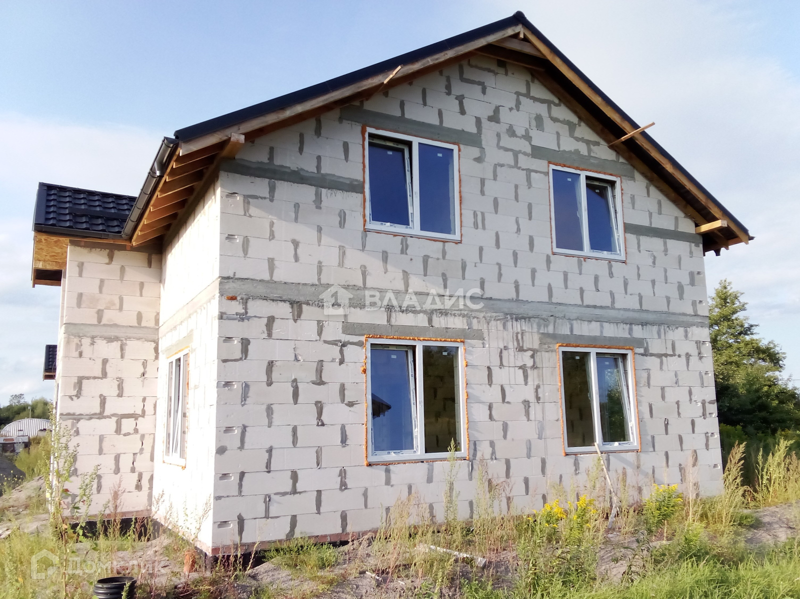 Дом на ленточном фундаменте. Материал стен и межкомнатных перегородок – газосиликатные блоки, монолитное перекрытие между 1 и 2 этажами, монолитная лестница, крыша - металлочерепица, крыша утепленная минеральной ватой и подшитая плитой OSB, двухкамерные стеклопакеты Пластикат Сервис, разведена вся сантехника по дому, с выводами канализации и водоснабжения.