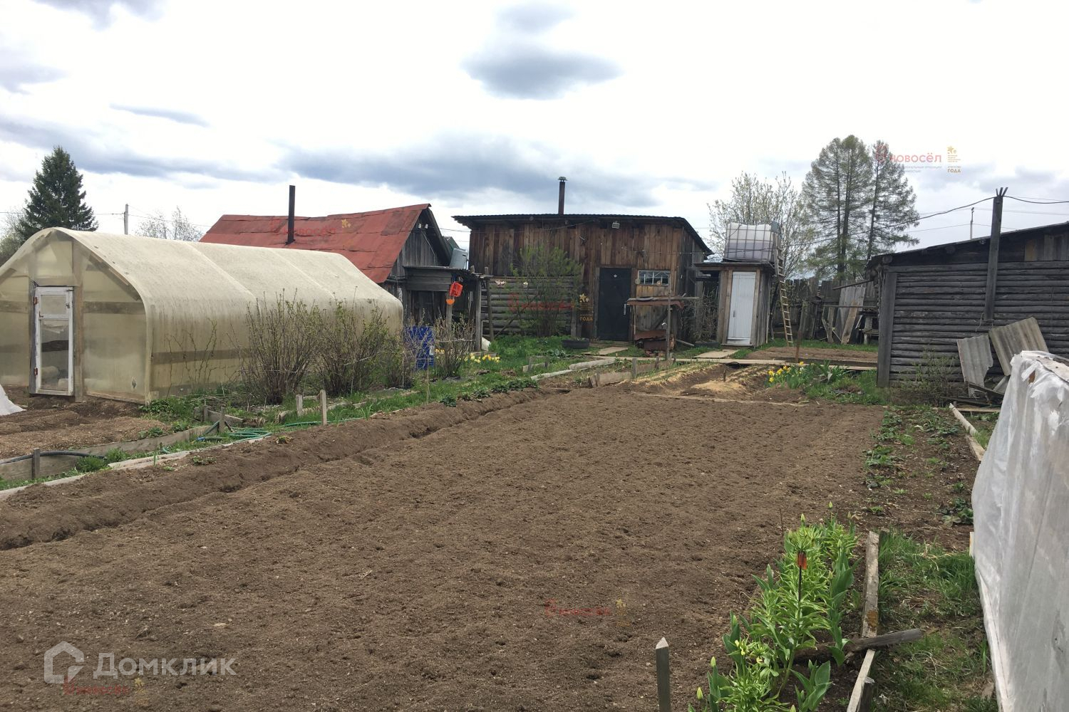 Есть гараж для автомобиля, погреб. Участок 10 соток. На нем расположены: сарай, туалет, баня. Земля разработана.