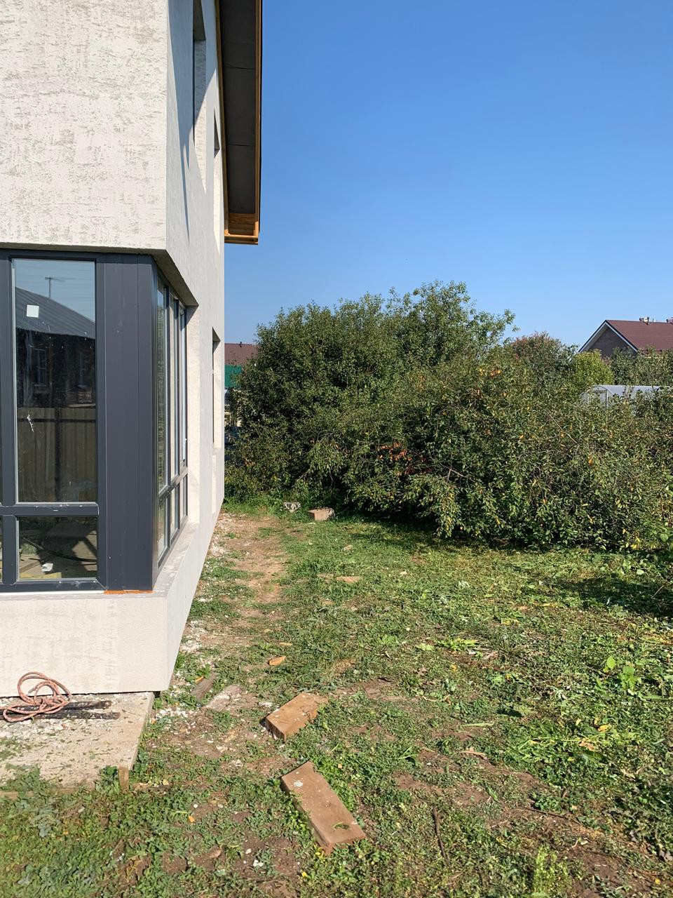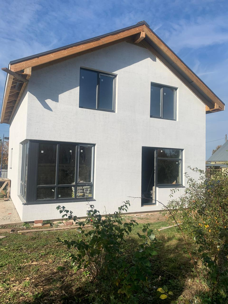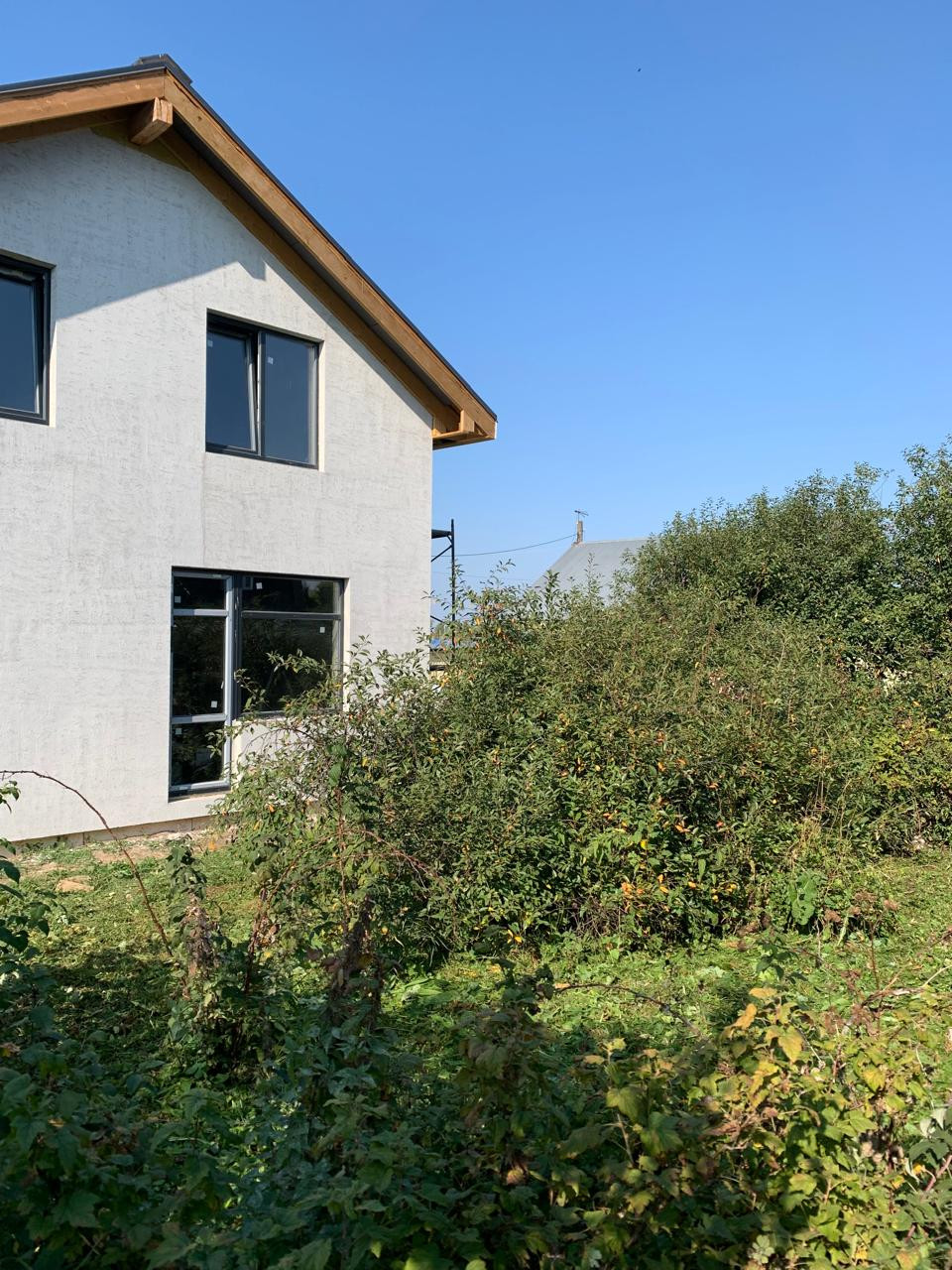 Кровля: Многослойная гибкая черепица премиум-класса Tegola (срок службы – 30лет, тишина и безопасность), сплошной подкладочный ковёр, ОSВ плита, утепление базальтовым утеплителем RОСКWООL Лайт Баттс Скандик – 200мм, смонтированы изолированные выходы вентиляции и канализации. Система металлических софитов, качественная металлическая водосточная система.