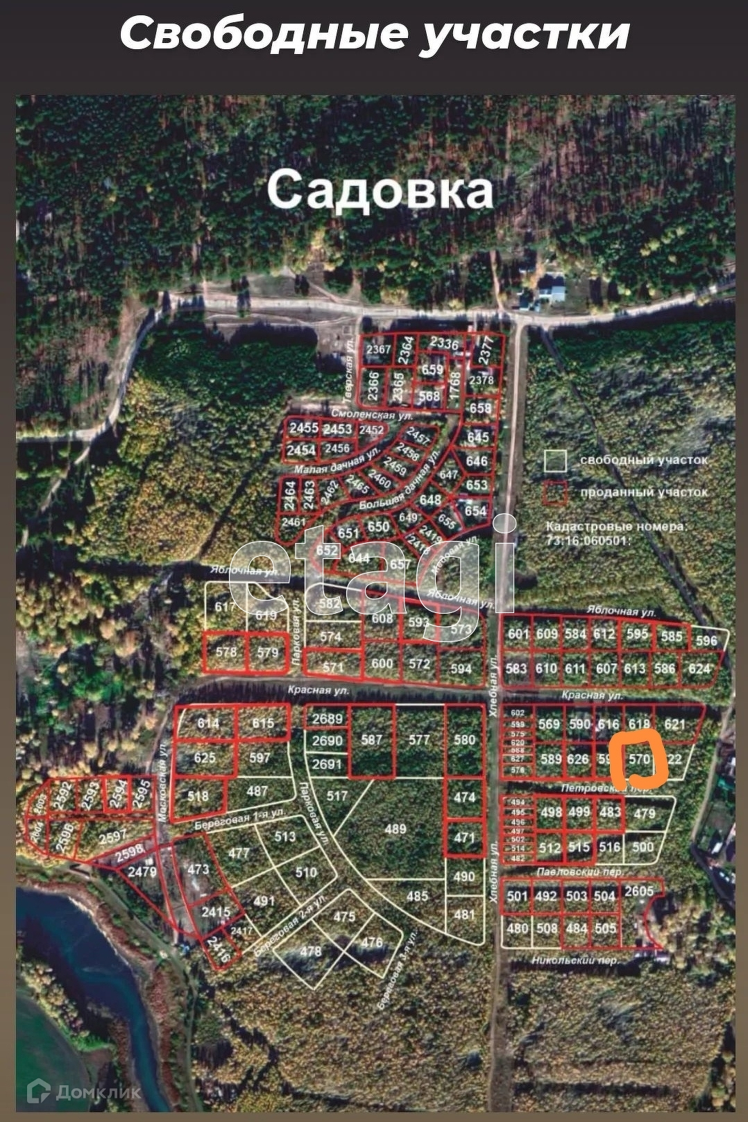 В продаже земельные участки разной площади.
