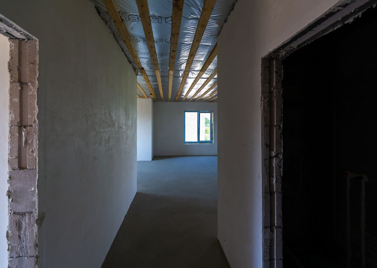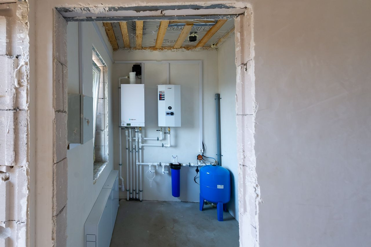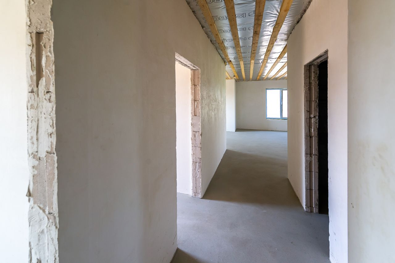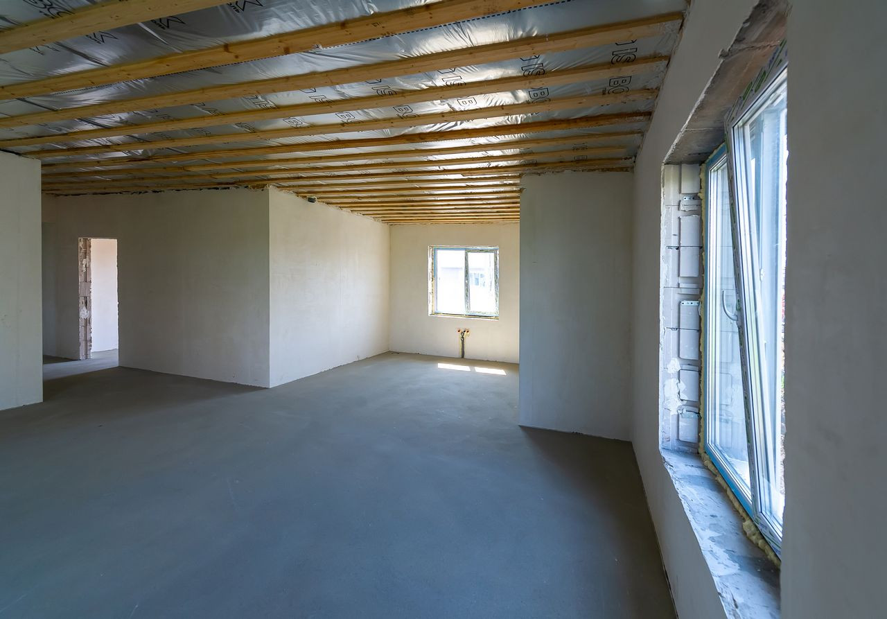 Дом в предчистовой отделке, что позволит сразу приступить к поклейке обоев, монтажу пола и т.д. (штукатурка «под обои», полусухая стяжка, водопровод, система отопления (водяной теплый пол от газового котла 24кВт), водоснабжения (скважина) и канализации (6,5 м3). Электричество введено в дом (3х5квт).