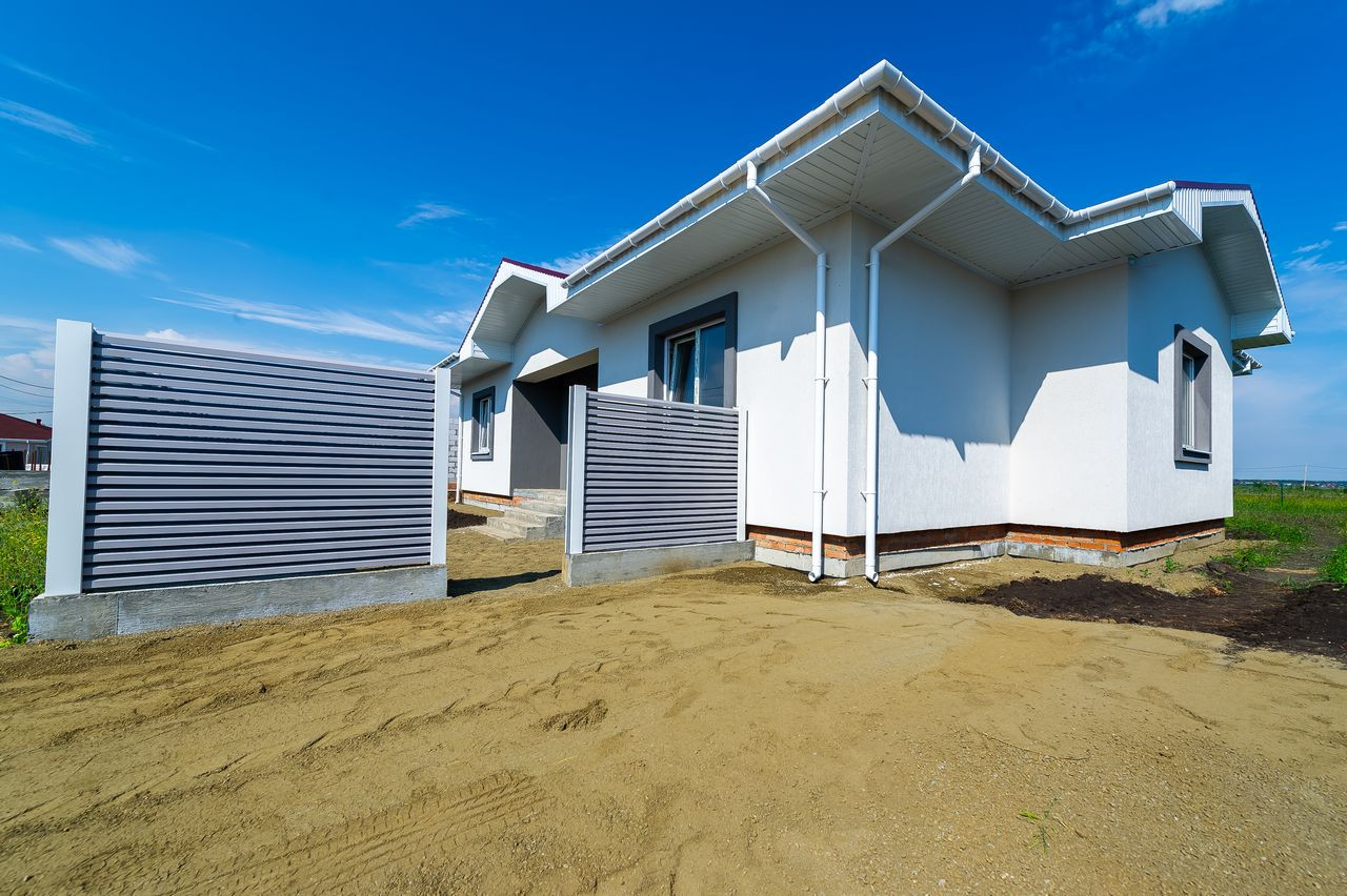 Одноэтажный, дом из газоблока в декоративной штукатурке "Ceresit"