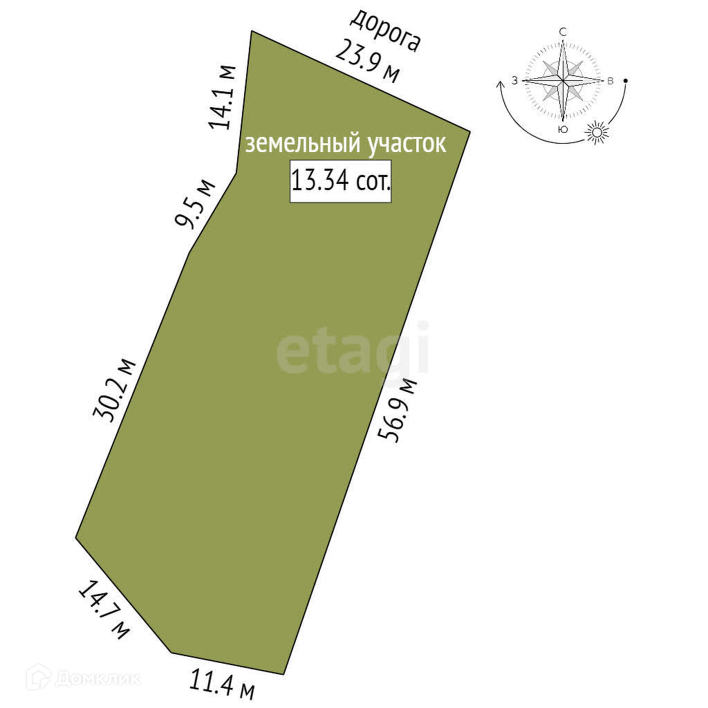 Площадь участка 13.34 сот.