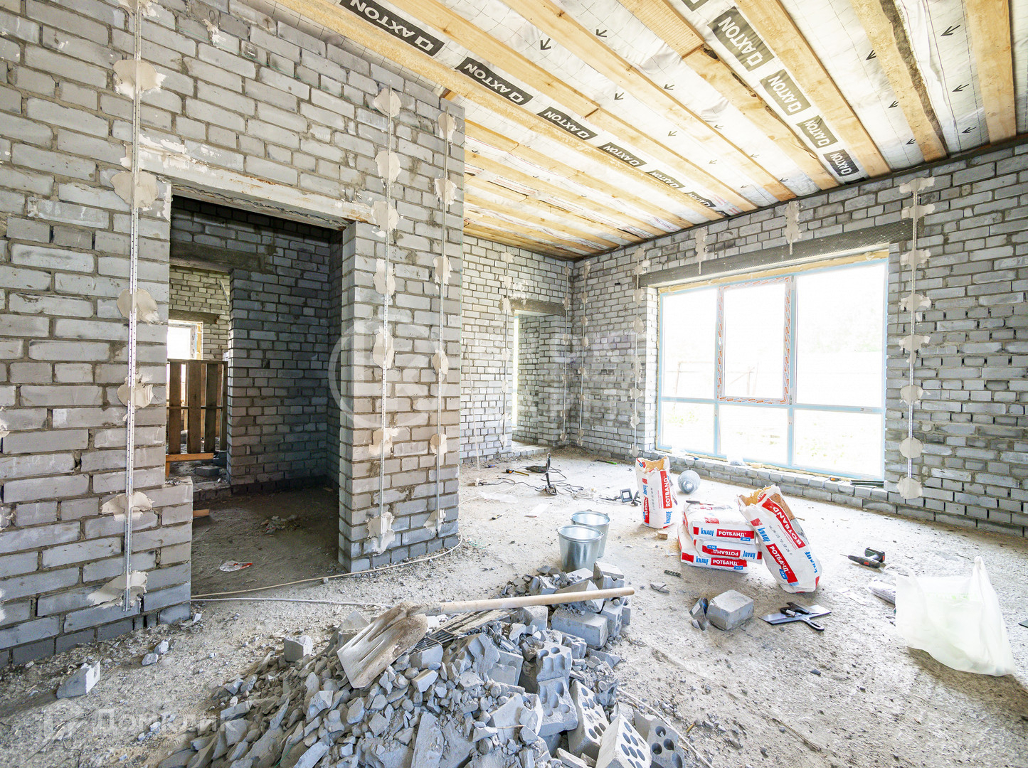 В доме установлены кашированные окна, заведена вода и канализация.
