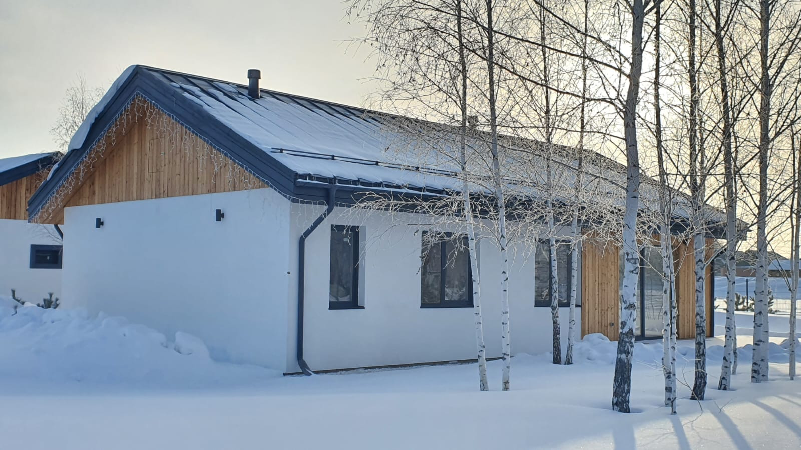 Готовый дом можно посмотреть по предварительной договорённости, там идут внутренние отделочные работы.