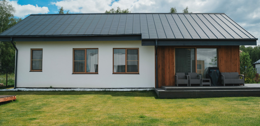 - Кровля: из профилированного листа, водосточная система,