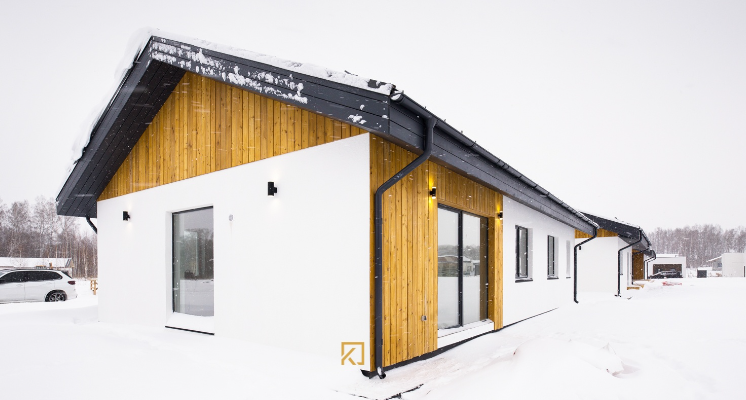 - Внешняя отделка фасадов и карнизов: декоративная штукатурка по системе Ceresit и строганная доска,