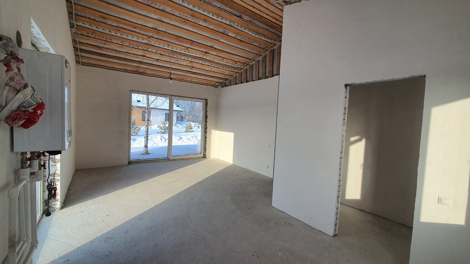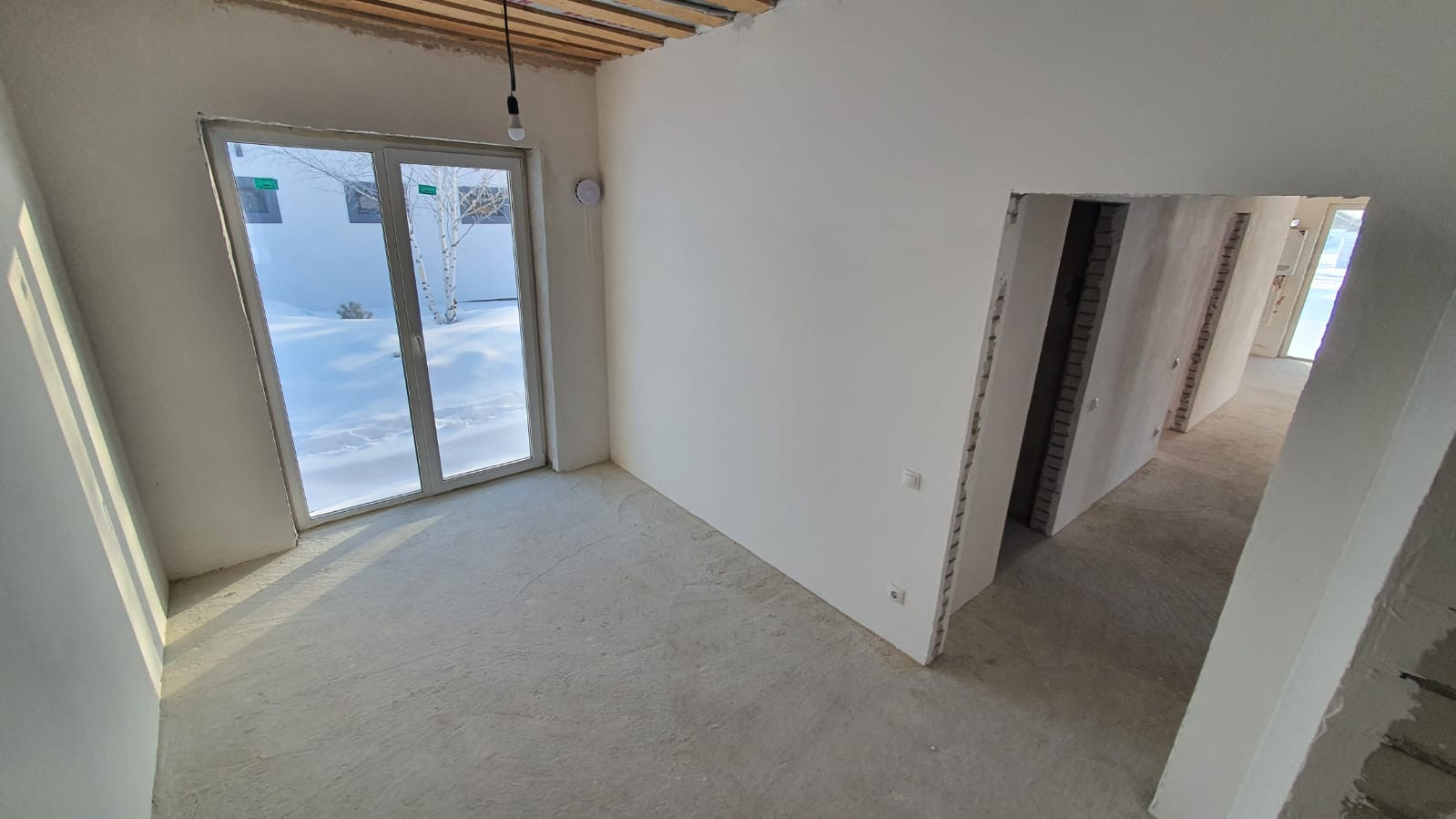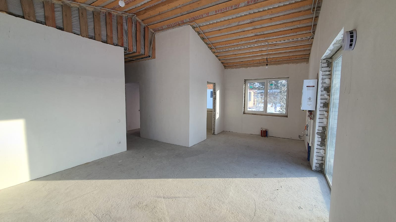 - Перегородки: автоклавный газобетон D600 100мм., стены отштукатурены,