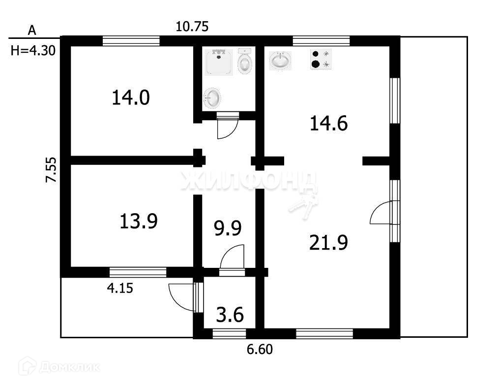 1-этажный дом, 118.6 м2, на продажу в поселке Садовом, улица Затонского