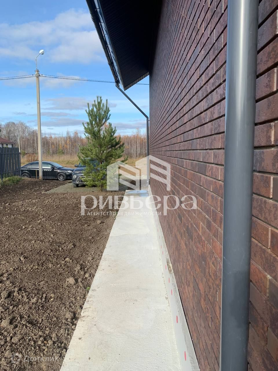Участок ровный, прямоугольный. О вопросе плодородности уже позаботились. Крыльцо и отмостка сделаны. И место для проковки тоже есть.