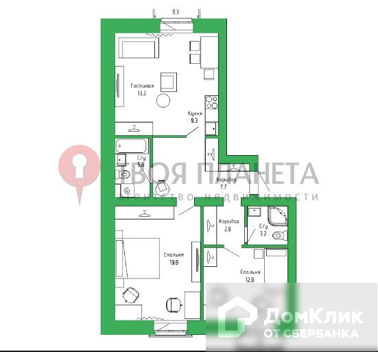 Общая площадь 87 м2