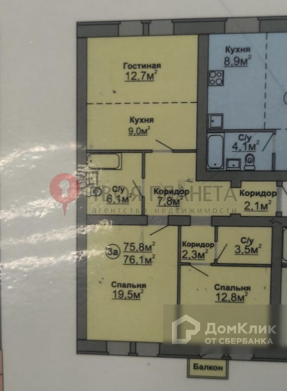 3-комнатная квартира, 87 м2, этаж 1 / 4, на продажу в поселке Садовом