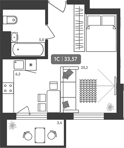 Общая площадь 33.57 м2