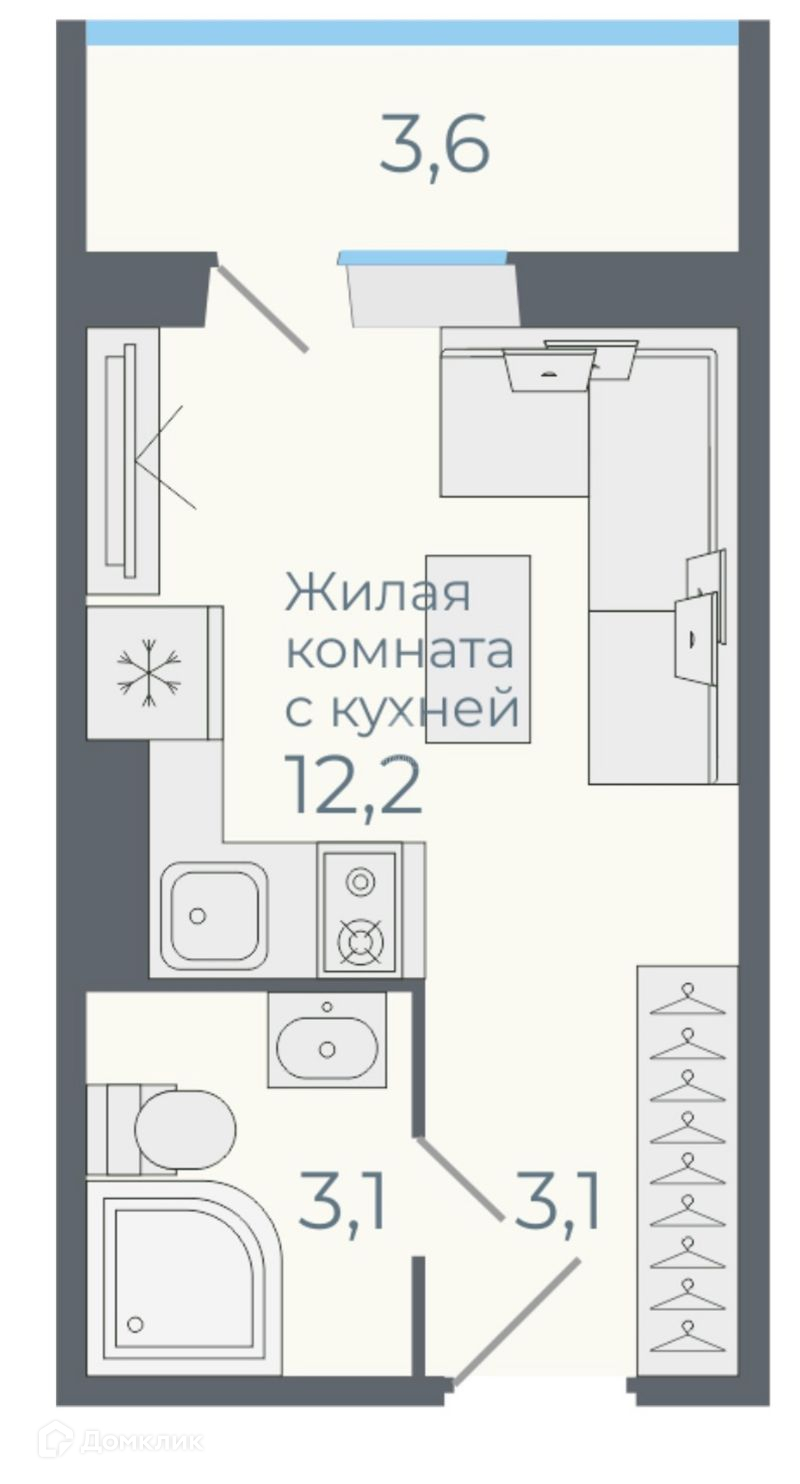 Общая площадь 22 м2