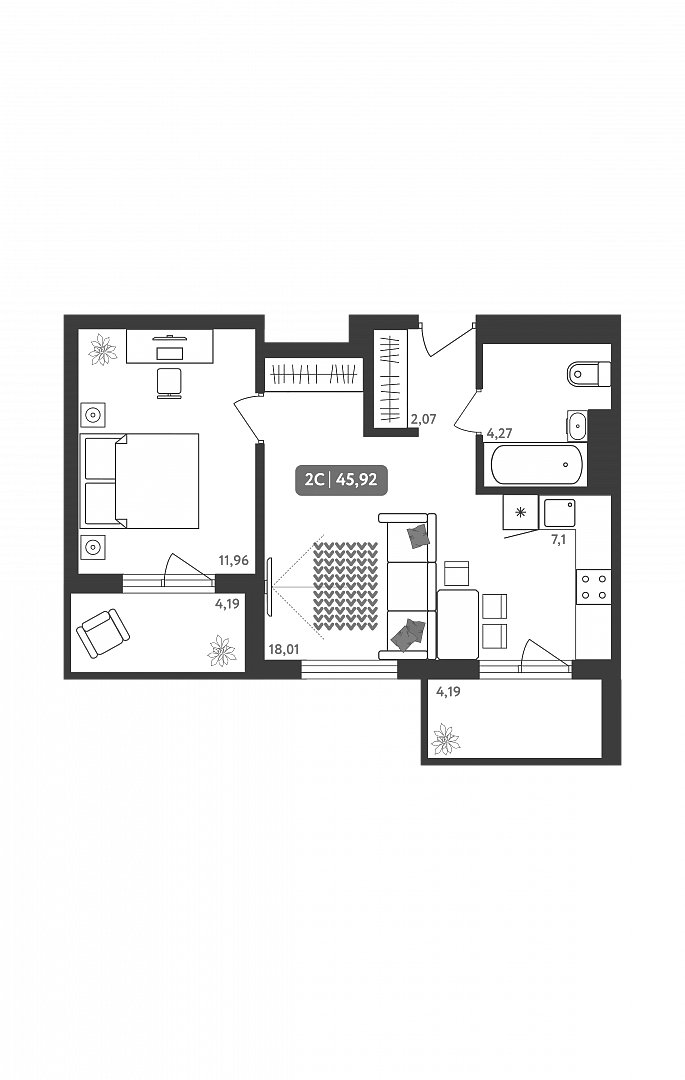 Общая площадь 45.92 м2