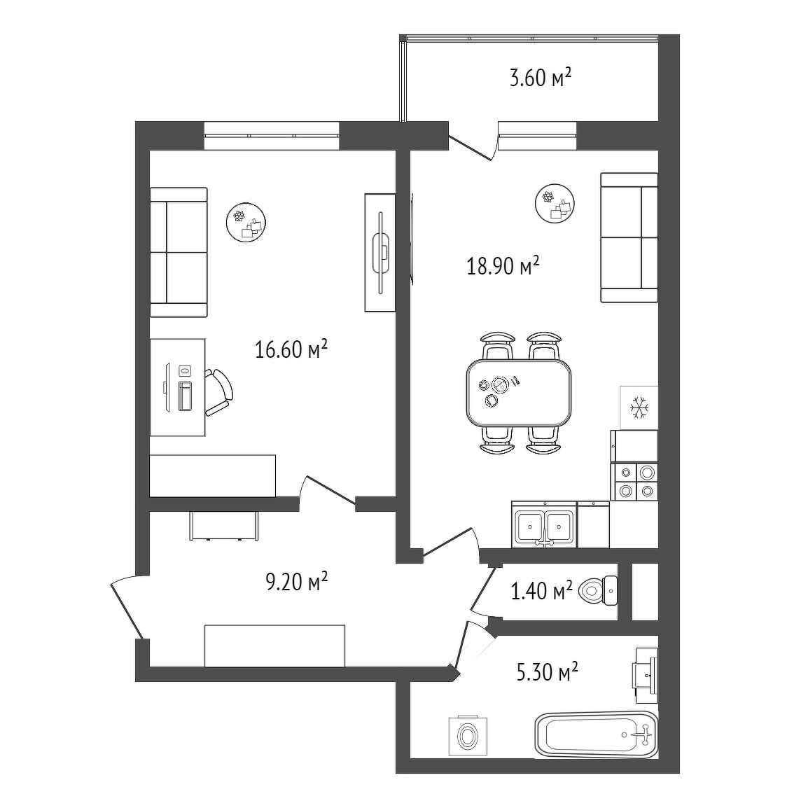 Санузел 1 раздельный