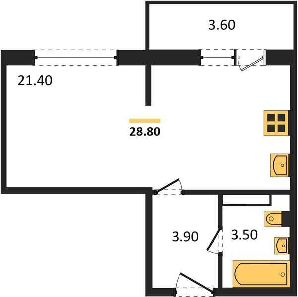 Общая площадь 28.8 м2