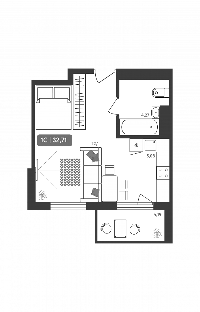 Общая площадь 32.7 м2