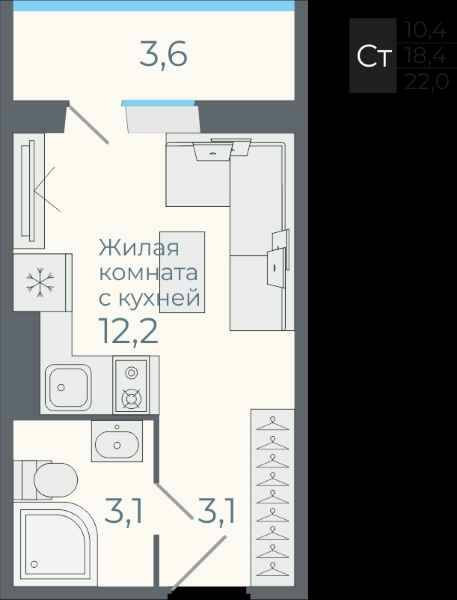 Общая площадь 22 м2
