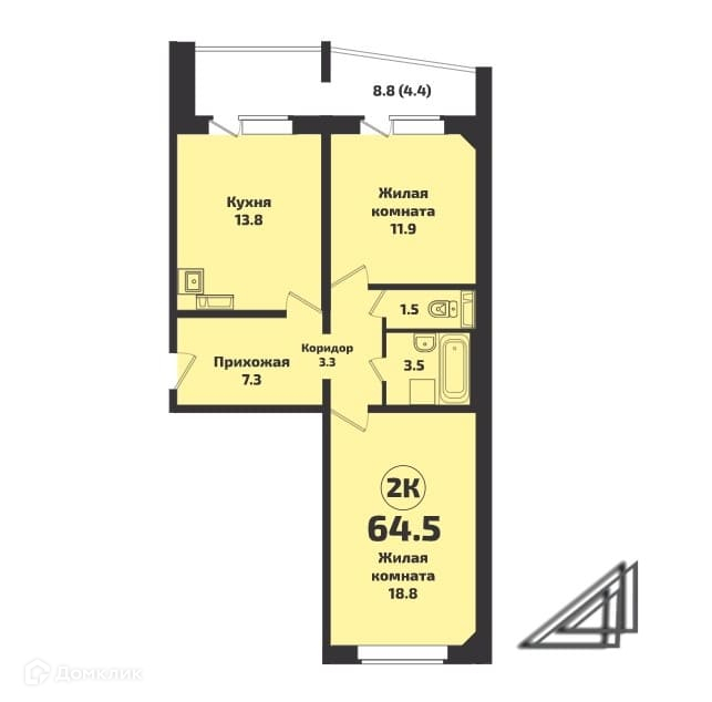 Общая площадь 64.5 м2