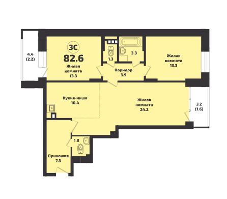 Общая площадь 82.6 м2