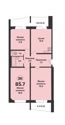 Общая площадь 85.7 м2
