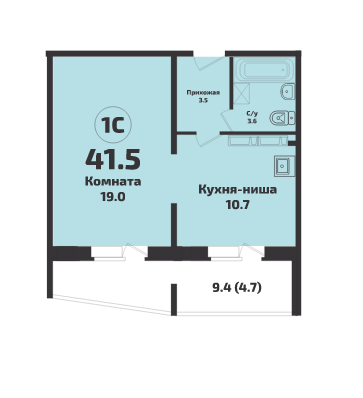 Общая площадь 41.5 м2