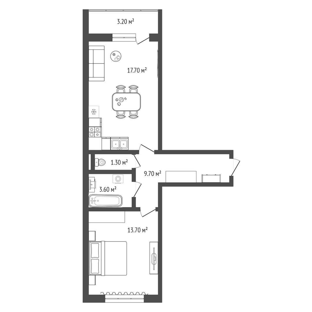 Общая площадь 50.8 м2