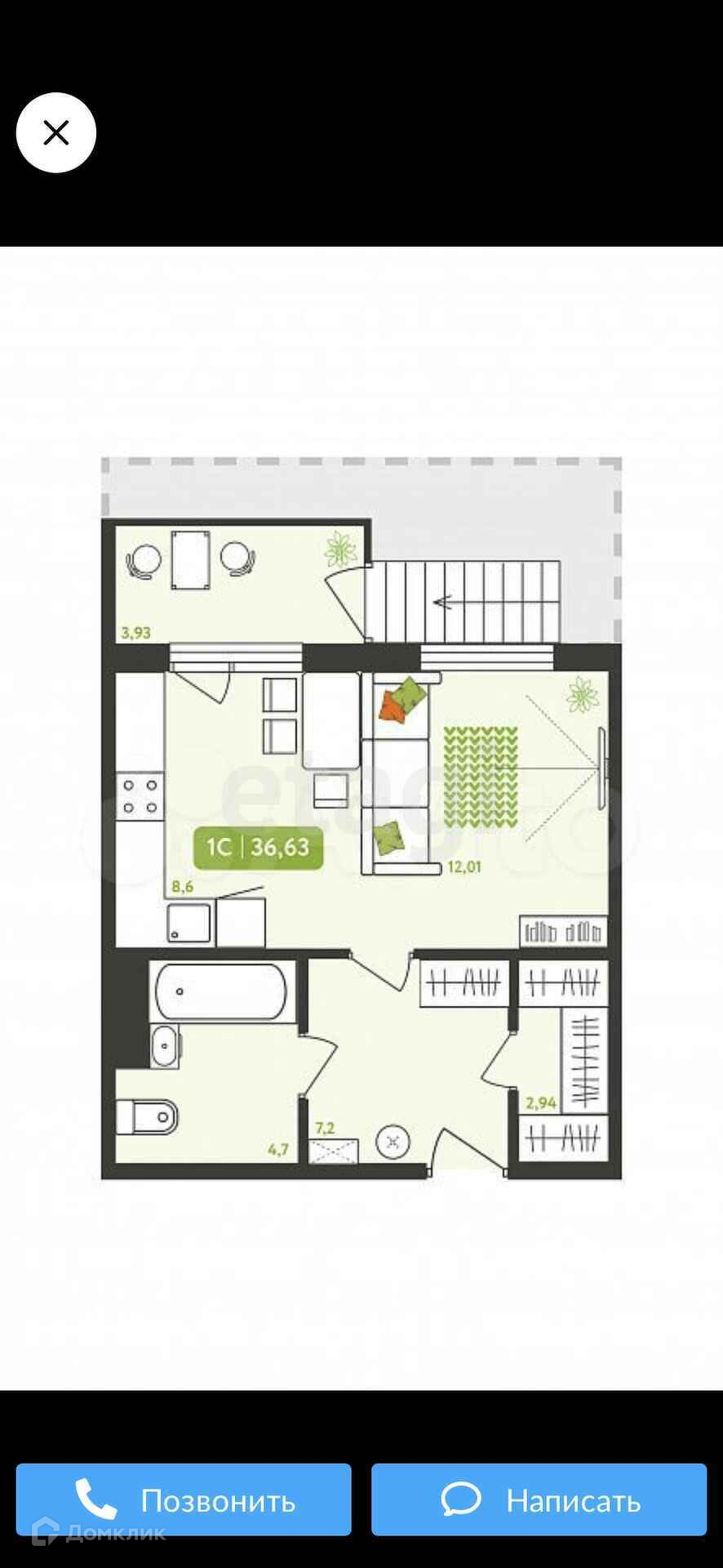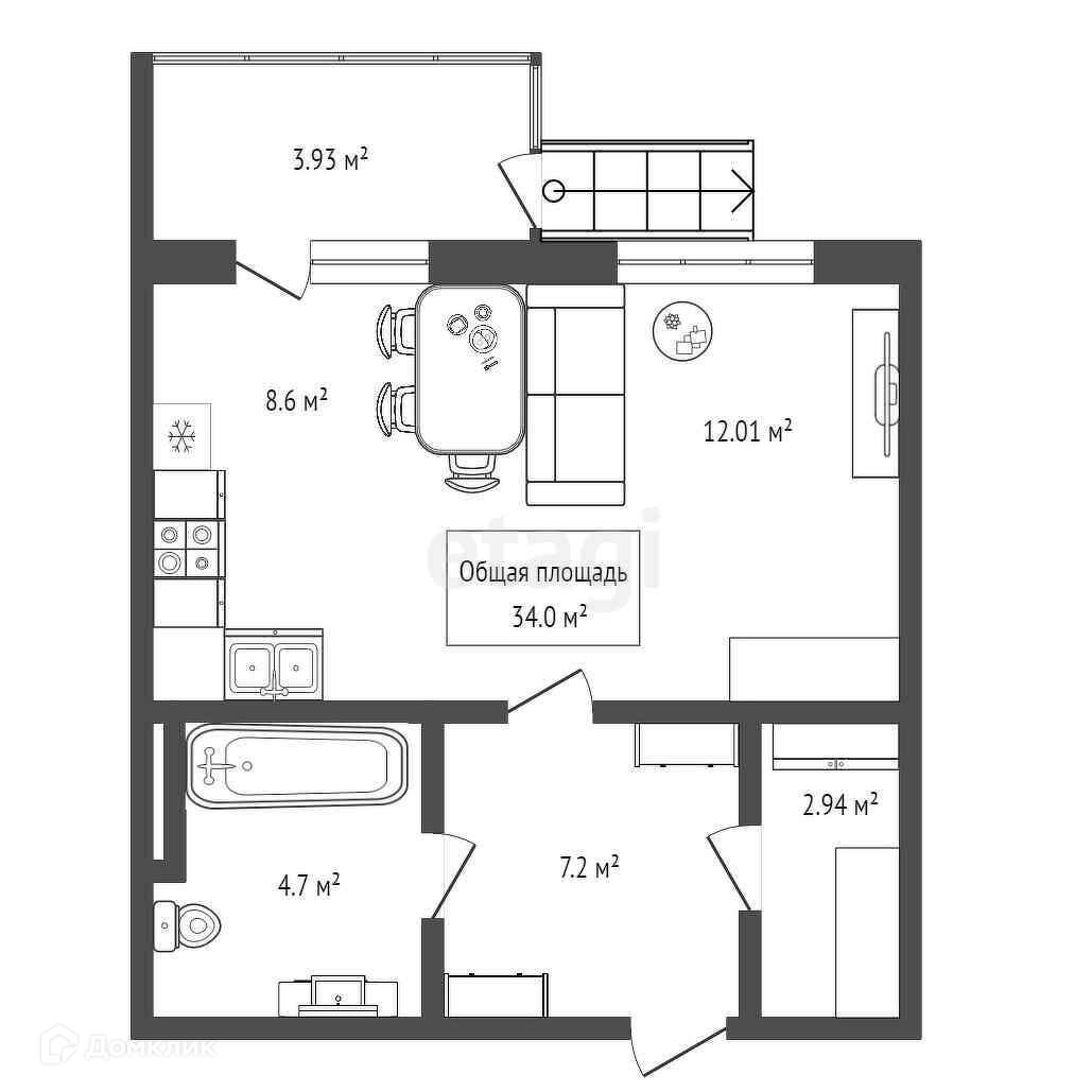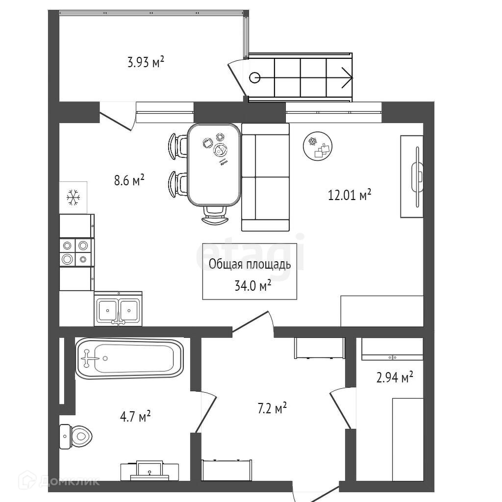 Общая площадь 34 м2