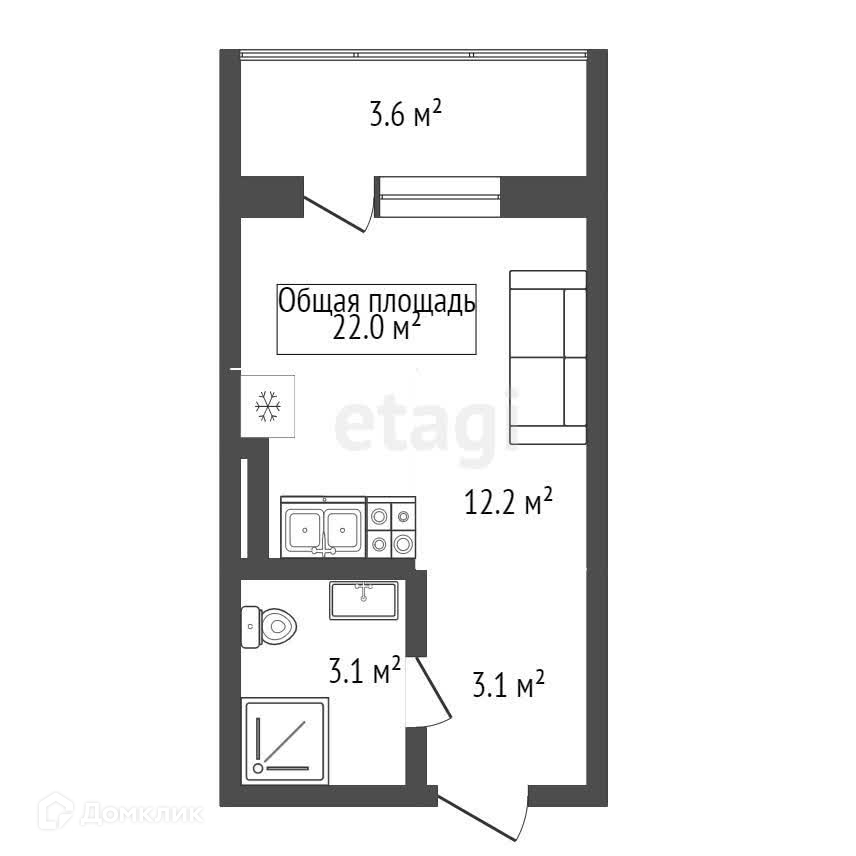 Общая площадь 22 м2