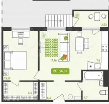 Общая площадь 56 м2