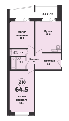 Общая площадь 64.5 м2