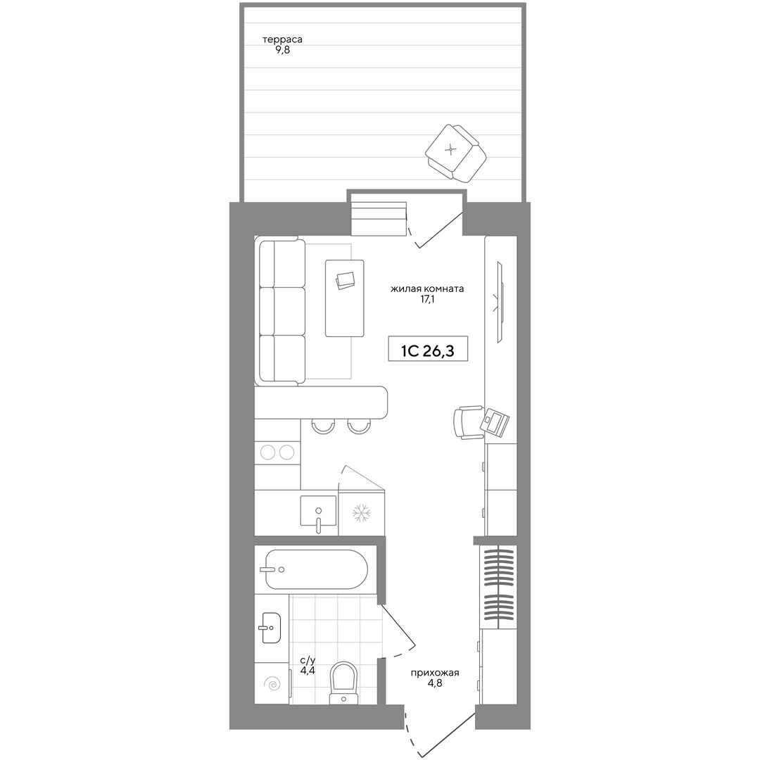 Общая площадь 26 м2