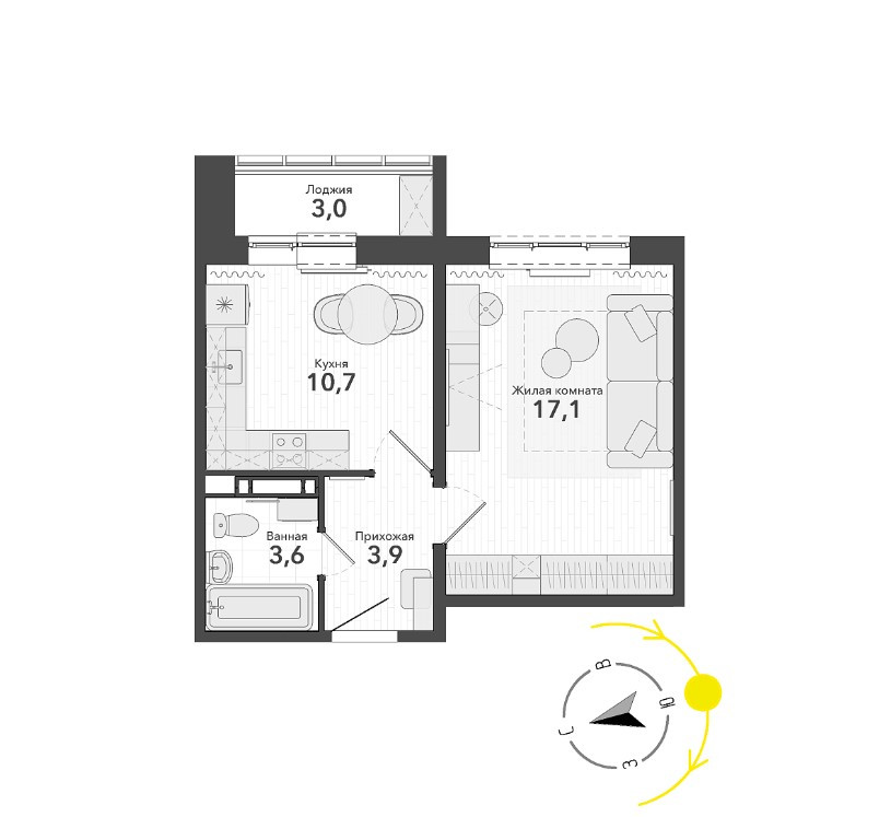 Жилая площадь 17 м2
