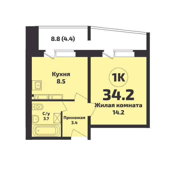 Общая площадь 34.2 м2