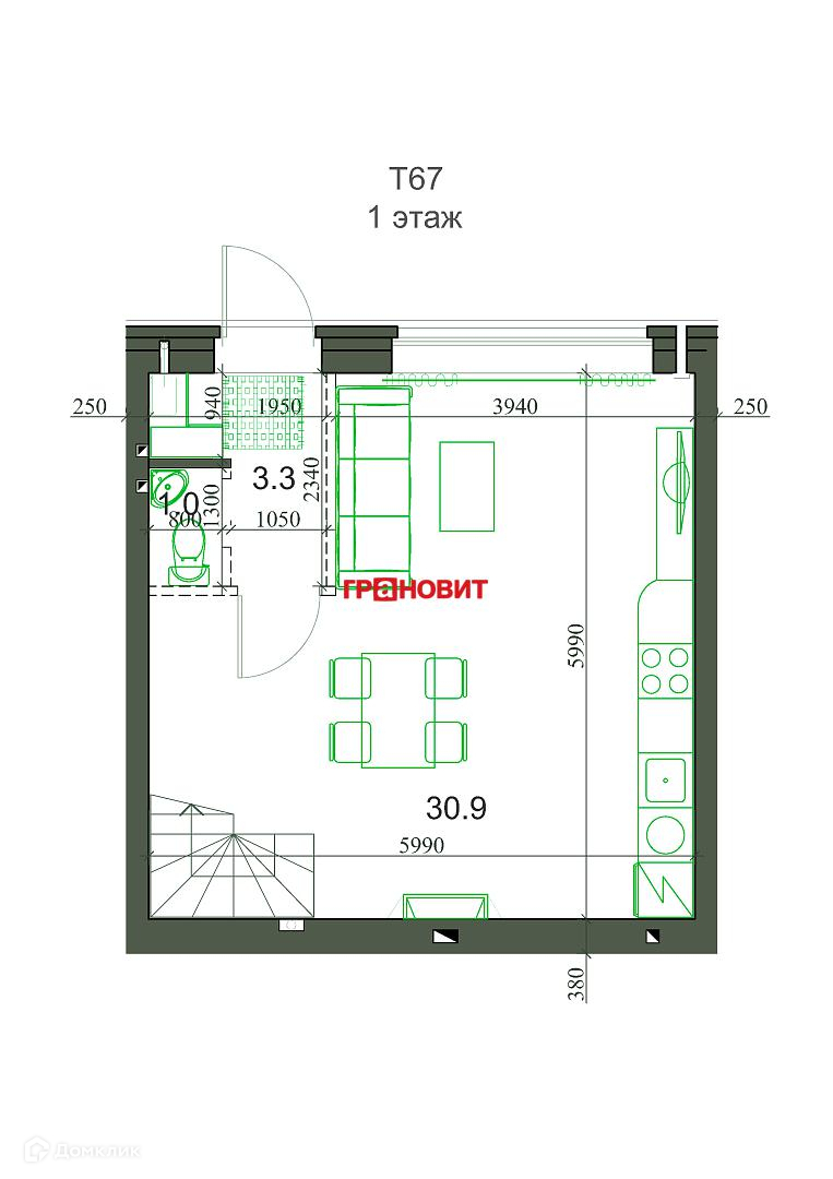 2-этажный таунхаус, 65.4 м2, на продажу в поселке Садовом
